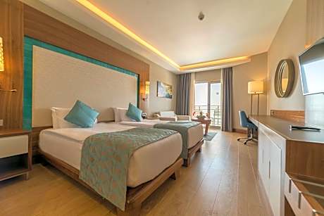 Great care is taken to ensure guests experience comfort through top-notch services and amenities. Remain linked during your visit by utilizing the complimentary internet access available.Prior to your check-in date, you can arrange airport transportation services, guaranteeing a seamless and efficient experience for both arrival and departure.Discovering Kusadasi becomes even more accessible through the car hire and shuttle amenities provided at the hotel.The hotel offers complimentary parking for guests who arrive with their own mode of transport. Effortlessly plan your daily activities and travel requirements with concierge service, luggage storage and safety deposit boxes provided by the front desk services. Securing passes to the city's top attractions is simple with the hotel's ticket service and tours. For extended visits or whenever required, the dry cleaning service and laundry service ensures your preferred travel garments remain clean and accessible. During leisurely days and evenings, in-room amenities such as 24-hour room service, room service and daily housekeeping enable you to maximize your stay in the room.The hotel is completely smoke-free.In limited designated zones, smoking is exclusively permitted. Crafted for coziness, every guestroom provides an array of features, guaranteeing a tranquil night's sleep while maintaining the level of comfort.For a more enjoyable stay, select rooms at hotel are equipped with linen service and air conditioning.For certain chosen rooms, guests can enjoy in-room amusement like television and cable TV as a part of their stay. Rest assured that your hydration needs will be met, as some guestrooms are equipped with a coffee or tea maker, instant coffee and instant tea.Maintain your cleanliness and comfort using a hair dryer and toiletries available in select guest restrooms. Begin your day on a delightful note with a scrumptious complimentary breakfast, consistently served at Ramada Resort by Wyndham Kusadasi. During your visit, indulge in a range of delightful culinary choices at hotel to enhance your experience. Enjoy an entertaining evening alongside your fellow travelers at hotel's very own bar and nightclub.Do you possess exceptional culinary skills? Prepare your meals personally within the hotel at its BBQ facilities. Indulge in the numerous pursuits available at Ramada Resort by Wyndham Kusadasi. During your time at Ramada Resort by Wyndham Kusadasi, you'll be delighted by the unique privilege of accessing the secluded beach.Treat and spoil yourself by stopping at massage, salon, steam room, spa and sauna for a memorable experience.Begin your holiday perfectly by taking a plunge into the swimming pool.At the hotel, enjoy a laid-back beverage experience by the poolside bar, sipping on a soothing cocktail.Eliminate those holiday calories by stopping by hotel and making use of their well-equipped exercise amenities.