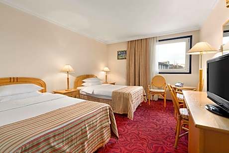 The Ramada by Wyndham Sofia City Center is located within walking distance to tourist sights and commercial areas of the city, offering comfortable rooms in a modern building. Free WiFi is available in all areas. Being 7.5 mi from Sofia International Airport, near to Central Railway and International Bus Station, the hotel enjoys a convenient location and won the Bulgaria's 2009 Best Convention Hotel prize. An airport shuttle service is available on request and for a surcharge. The lobby bar has a pleasant ambiance, and the Meridien Restaurant serves international cuisine. You can use the indoor pool and fitness center for free. You can also indulge yourself with some of the exceptional spa treatments in the Real Asian Victoria SPA center.