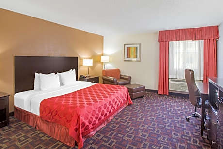 Located off Interstate-44, this hotel is 6.5 mi from Tulsa International Airport and Philbrook Museum of Art. It features an indoor pool, hot tub and modern rooms with a 32-inch flat-screen TV. A microwave, refrigerator and coffee maker are standard in every room at the Ramada Tulsa. All rooms include free WiFi. Free access to the gym is provided to all guests of Tulsa Ramada hotel. Laundry facilities and free on-site parking are also available. A breakfast buffet with made-to-order waffles is served at the property. A 24/7 convenience store has snacks and drinks for purchase. The Tulsa Zoo is a 15-minute drive from the hotel. The University of Tulsa is 5.6 mi away.