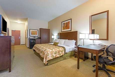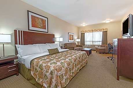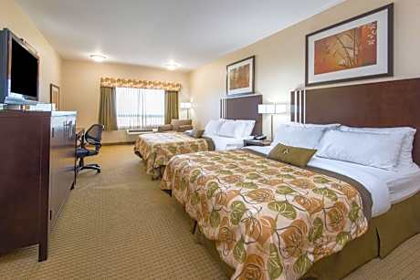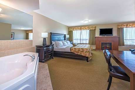 Featuring barbecue facilities and free WiFi throughout the property, Ramada by Wyndham Wainwright is located in Wainwright. The hotel has family rooms. All air-conditioned units at the hotel come with a fridge, a microwave, a coffee machine, a shower, free toiletries, a flat-screen TV with cable channels and DVD player. Rooms are equipped with a private bathroom with a hairdryer, while some rooms have a kitchenette with a stovetop. The rooms have a desk. Buffet and continental breakfast options are available each morning at Ramada by Wyndham Wainwright. The accommodation offers 3-star accommodations with an indoor pool, fitness center and hot tub. Guests will find a 24-hour front desk, a shared lounge and a business center at the property.