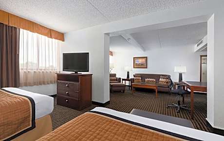 This Casper hotel is just 1.5 miles from the Casper Events Center. The hotel features a water playland pool and rooms feature warm décor and free WiFi. A free breakfast is served daily. Guest rooms at Ramkota Hotel - Casper feature rich wood furnishings and offer a sitting area with a TV. Tea and coffee-making facilities are also provided for guests' convenience. An indoor pool and hot tub are available at the Casper Ramkota Hotel. A fitness center and game room are also featured. Remington, an American-style casual restaurant and bar, is on site offering breakfast, lunch, and dinner daily. Room service is available. Natrona County International Airport is 20 minutes’ drive from the hotel and Three Crowns Golf Course is less than 10 minutes’ drive away.