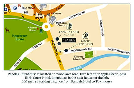 Located in Killarney, a 14-minute walk from INEC, Killarney Randles Hotel provides accommodations with a terrace, free private parking, a restaurant and a bar. With free WiFi, this 4-star hotel offers room service and a 24-hour front desk. The hotel features family rooms. At the hotel, every room includes a closet. With a private bathroom equipped with a shower and a hairdryer, some units at Killarney Randles Hotel also provide guests with a mountain view. All guest rooms at the accommodation are equipped with a flat-screen TV with satellite channels and a safety deposit box. Popular points of interest near Killarney Randles Hotel include St. Mary's Cathedral, Killarney Railway Station and FitzGerald Stadium. Kerry Airport is 11 miles away.