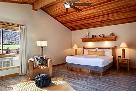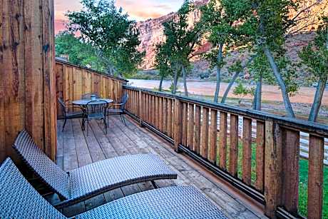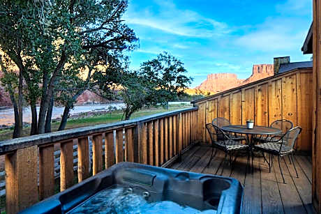 This Moab, Utah resort is on Scenic by Way 128 along the Colorado River and 15 miles from Arches National Park. Red Cliffs Lodge Moab features a horse corral, Western film museum and Castle Creek Winery. Private patios with creek or river views are featured in every suite. A separate living area provides a dining table, fridge and microwave. Free Wi-Fi is included. They are styled with Mexican tile floors, wood-paneled ceilings and solid log furniture. An outdoor pool and gym are on site.
