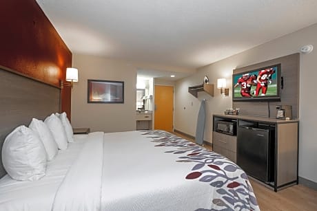 Located 12 miles from the Albany International Airport, this hotel in Clifton Park, New York is located off of Interstate 87. Free WiFi is also accessible. The rooms at Red Roof Inn Clifton Park include a cable TV. There is also a desk and free toiletries can be found in the private bathroom. Guests staying at the Clifton Parks Red Roof Inn can cook with the on-site BBQ facilities. A fitness center is also available so guests may exercise. Saratoga Casino and Raceway are 18 minutes’ drive from the hotel.