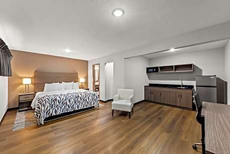 This hotel is 3 miles from downtown Del Rio and is 4 miles from the Del Rio International Airport. The hotel offers guests an airport shuttle and suites with free Wi-Fi. Studio 6 Del Rio suites include a fully equipped kitchenette and seating area. Studio 6 Del Rio offers barbecue facilities. Del Rio Studio 6 is 9 miles from Lake Amistad, a large man-made lake. The Laughlin Air Force Base is within a 20-minute drive of the hotel.