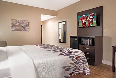 This Tupelo, Mississippi hotel is minutes from Elvis Presley’s Birthplace and Tupelo National Battlefield. The hotel offers a free daily continental breakfast and free high-speed internet access. Every room at the Red Roof Inn Tupelo comes equipped with a coffee maker and a work desk. Cable TV with in-room films is available in each room. A fitness room and an outdoor pool are on-site at the Tupelo Red Roof Inn. The hotel offers laundry service. The Day-Brite Headquarters is just a short drive from this Tupelo, Mississippi Red Roof Inn. The Tupelo Buffalo Park is also nearby.