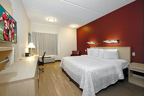 Red Roof Inn Plus+ Gainesville is located in Gainesville, FL. The property offers the convenience of free WiFi. Butler Plaza shopping center is a 3 minutes' walk away. Each room features a cable TV and an private bathroom. Some rooms offer a microwave and small refrigerator. Rooms also include an in-room snack, towels, and linen. The property has a 24-hour reception desk and vending machines . Free parking is provided by the Red Roof Inn Plus+ Gainesville for added convenience. The hotel is 2.9 mi from University of Florida, and 3 mi from Ben Hill Griffin Stadium at Florida Field. Regal Cinemas Royal Park Stadium 16 is 2.3 mi from the property.