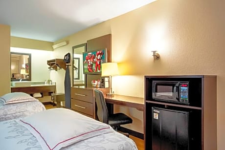 Located in Secaucus, New Jersey, with views of the Hackensack River, Red Roof Plus+ Secaucus – Meadowlands is 2 mi away from Meadowlands Exposition Center. It offers complimentary Wi-Fi and a 100% smoke-free Inn to its guests. Each room at the Red Roof PLUS+ Secaucus - Meadowlands includes a work station, HD flat-screen TV, ironing facilities, and a hairdryer. Free local calls can be made from every room. Select rooms include a microwave and a refrigerator. The property also features a coin operated laundry and a picnic area. Central Park Zoo is 8.1 mi from Meadowlands Red Roof PLUS+. The Meadowlands Sports Complex: MetLife Stadium, home to the New York Giants, is 2.5 mi away. Teterboro Airport is 6 mi away and Newark International Airport is 13 mi away.