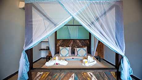 Quietly nestled along the white-sandy beach, this charming hotel is a wonderful place for guests looking for a vacation along the southern Zanzibarian shore. They will be pleasantly surprised by the relaxed lounge bar set on the jetty, which expands into the Indian Ocean, there they can spend their evenings with a refreshing cocktail and some good company. Those looking for some pampering can treat themselves with a soothing massage in the spa or just enjoy the calming ocean waters at the beach. Guests looking for some new culinary sensations can head to the restaurant where they can try delicious takes on traditional dishes, Indian food or fresh seafood. At the end of the day the spacious, air-conditioned rooms, which are fitted with Zanzibar-style furniture, will welcome them to their calm ambience.