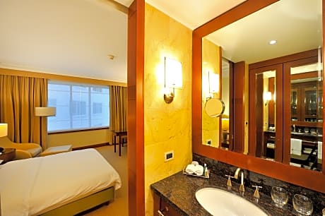 The elegant Regent Warsaw Hotel is located in a diplomatic district of Warsaw, a 2-minute walk from the Royal Łazienki Park. Rooms feature satellite TV, air conditioning and all hotel guests have free access to the fitness center and swimming pool. All rooms are fitted with an LCD TV and offer a comfortable seating area, a spacious bathroom with a bathtub and a separate walk-in shower. Guest can benefit from complimentary Wi-Fi, a safe deposit box and tea/coffee making facilities. The Venti-tre restaurant serves modern Italian and Polish cuisine, and in the summer time invites guests to use its garden terrace. Łazienki Lounge lobby bar offers a choice of tea, coffee and drinks. A lavish breakfast buffet is served in the morning. Hotel guests are welcome to enjoy a modern selection of relaxation and sports facilities at Wellness Club Regent, including a gym, aerobics studio, heated swimming pool, sauna and a hot tub. All are available free of charge. The hotel is located within a 10-minute walk from Plac Unii Shopping Center, a 15-minute drive from the Warsaw Old Town and only 20 minutes by car from Warsaw Chopin Airport.