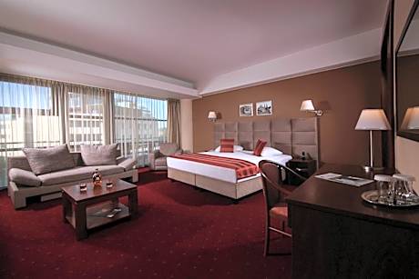 This air-conditioned, spacious room features a mini-bar and flat-screen cable TV.