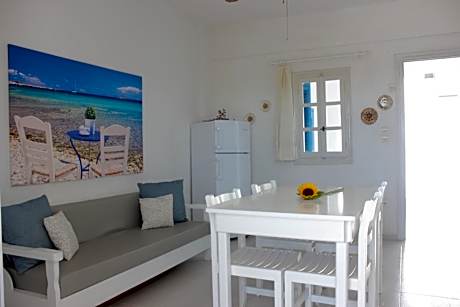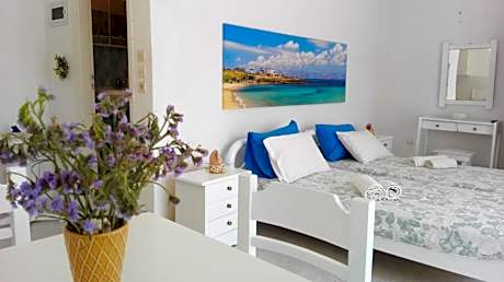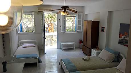 The family-run Remvi studios is built on the popular beach of Pounda, 3.7 mi from the port and 5 mi from the airport of Paros. All units are equipped with TV, air conditioning, ceiling fans and fully equipped kitchen with refrigerator. The beach of Pounda is a world-class kite surfing area and it also serves as the starting point to reach the island of Antiparos with boats departing every 15 minutes. The lively village of Naousa is 9.9 mi away, while the sandy beach of Santa Maria is at 12 mi. License Number(s): 1175K123K0730400