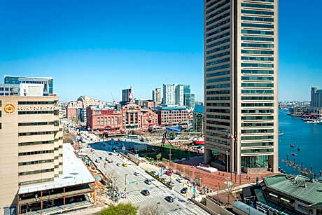 This hotel is across the street from Baltimore’s Inner Harbor. It offers a concierge desk and rooms with flat-screen TVs. Renaissance Baltimore Harborplace Hotel rooms include a refrigerator and coffee maker. The rooms are equipped with an iPod docking station. Dining at the Renaissance Baltimore is at the Watertable restaurant, which serves American cuisine. The Ground Floor Café & Bar is a coffee shop and bar that serves Starbucks Coffee drinks. Guests can work out in the gym. The hotel also has a business center. Free WiFi is available in public areas. The Baltimore Renaissance Hotel is within a 15-minute of the Oriole Park, a sports venue. The Baltimore Convention Center is within a 10-minute walk of the hotel.