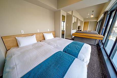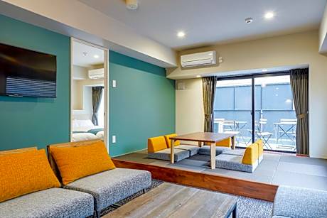 The quadruple room includes a private bathroom, well-fitted with a bath, a shower, a bidet, a hairdryer and slippers. Meals can be prepared in the kitchenette, which comes with a stovetop, a refrigerator, kitchenware and a microwave. This quadruple room is air-conditioned and features a flat-screen TV with streaming services, a washing machine, tatami and a wardrobe. The unit offers 3 beds and 1 futon.