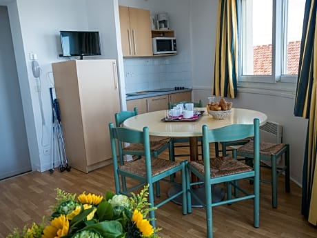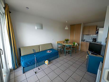 Résidence Mer et Golf Eugénie is set in a 2-hectare garden and overlooks Marbella beach located just 984 feet away. It is a 3-minute drive from Biarritz town center and offers an outdoor swimming pool. The studios and apartments at Résidence Mer et Golf Eugénie are contemporary in style and offer a private balcony or patio. Each has a TV and some have views of the sea. The residence also offers a daily continental breakfast in the breakfast lounge and bakery service. Additional facilities include mini golf, tennis courts and table tennis. Free basic WiFi is available and high-speed WiFi can be provided at an extra cost. Ilbarritz Golf Club is 0.9 mi away and private parking is free for guests with a car. There is a bus stop in front of the residence servicing the city center. Shops can be found 2953 feet away.Ocean Museum is 2461 feet from the residence and the a thalassotheray center is 656 feet away.