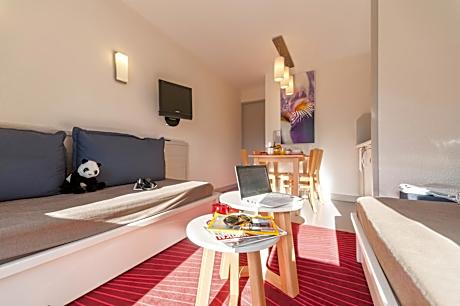 Résidence Pierre & Vacances La Daille is located at the entrance of the Val d’Isere Tignes ski resort. It is 656 feet from the ski elevators and offers uninterrupted views of the valley and village. All of the apartments in the residence have a small kitchen (4 ceramic hobs, refrigerator, microwave oven and grill, dishwasher, electric coffee-maker), a private balcony or loggia, TV and private bathrooms with a separate toilet. Résidence Pierre & Vacances La Daille also offers a children’s area and a free shuttle service to and from the ski elevators. Upon prior reservation and depending on the date of the stay, guests can benefit from reduced rates for ski passes and equipment rental. There is a bread and pastries delivery service available at the reception. "some accommodations offer 1 bathroom with a bathtub and a shower. Please contact the reception" Green Key-awarded.