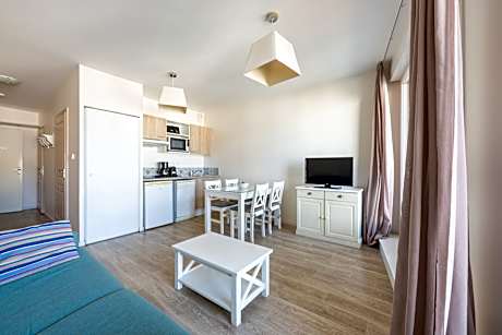 Located opposite the Libraires Beach in Pornichet, Résidence Prestige Odalys De La Plage offers self-catering accommodations with a heated outdoor swimming pool, open during the summer months. During July and August, the property runs a kid's club. All accommodations features a living area with a flat-screen TV, a bedroom with a wardrobe and a bathroom. The kitchenette includes an oven, microwave and dishwasher. Grocery shops and restaurants can be found within walking distance and free WiFi access is available in each accommodations. Additional features include a garden and terrace. Parc des Sports Léo Lagrange Sainte Nazaire is 6.6 mi away. La Baule-Escoublac is only a 10-minute drive away and Nantes Atlantique Airport is located 35 mi from the accommodations.