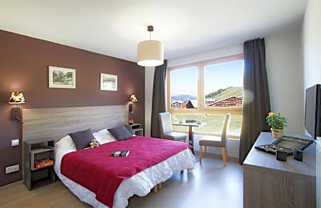 Located in Plagne Villages in the Rhône-Alps region, with La Plagne Center Ski School and ski elevators nearby, Résidence Prestige Odalys Front de Neige provides accommodations with free WiFi, as well as access to an indoor swimming pool. Each unit offers a fully equipped kitchenette, a flat-screen TV, a living room with a sofa bed, and a private bathroom. A microwave and fridge are also featured, as well as a coffee machine.