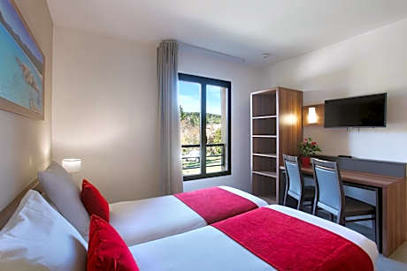 Suite Home Aix en Provence Sud TGV is set in Bouc-Bel-Air, a 10-minute drive south of Aix-en-provence and a 15-minute drive from the TGV train station. It offers an outdoor swimming pool, a sauna and a fitness room. The accommodations at Suite Home is contemporary in style and features views of the garden. Each one is also air-conditioned and provides a kitchenette, equipped with hotplates and a microwave. Some rooms include a terrace. Breakfast is served every morning in the property’s breakfast room or on the terrace. Additional facilities at this residence include luggage storage and a laundry service. Free private parking is provided on site and the A51 motorway is just a 5-minute drive away. As well as discovering the city center, you can drive the 10 minutes to Aix Marseille Golf Club or the 12 mi to Vitrolles. Marseille Provence Airport is 14 mi away.