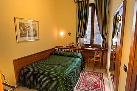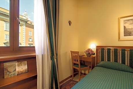 This smaller air-conditioned room has a flat-screen TV with satellite and a private bathroom with a hairdryer. Features a small double bed.
