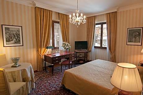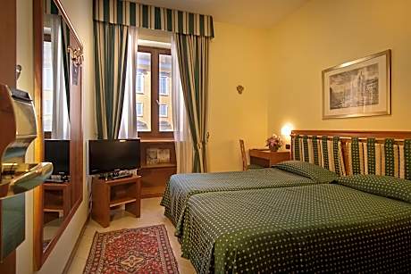 Offering panoramic views of Saint Peter's Square from its rooftop terrace, Residenza Paolo VI is a converted monastery with free WiFi. Just yards from Saint Peter's, the property is 15 minutes' walk from the Vatican Museums. Classically furnished and all air conditioned, rooms here have an LCD TV with satellite channels, tiled or wooden floors, and elegant rugs. The private bathroom comes with a hairdryer. Breakfast at Paolo VI is an extensive sweet and savory buffet including scrambled eggs, cheese, cereal and yogurt. Drinks and snacks can be enjoyed up on the terrace, with great views of the Apostolic Palace. The Residenza is 2297 feet from both Castel Sant'Angelo castle and the river Tiber. It has excellent bus and metro links around Rome, with the 40 Express bus stopping nearby. License Number(s): IT296848R6SDNAEIZ8