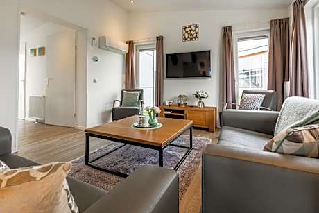 Featuring a private entrance, this air-conditioned holiday home consists of 1 living room, 2 separate bedrooms and 1 bathroom with a walk-in shower. Guests can make meals in the kitchen that is equipped with a stovetop, a refrigerator, a dishwasher and kitchenware. Boasting a terrace with garden views, this holiday home also provides a coffee machine and a flat-screen TV with cable channels. The unit offers 4 beds.