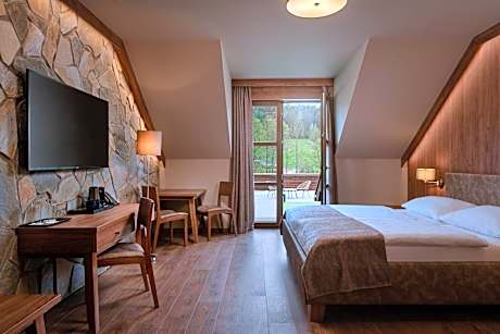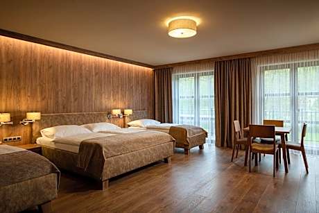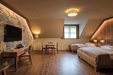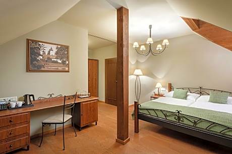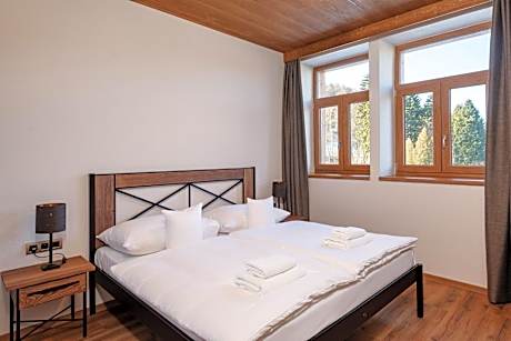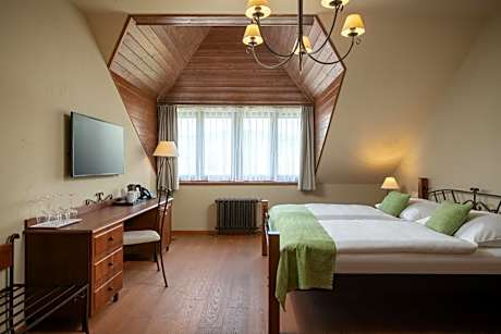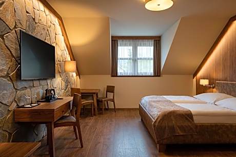 Resort Sobotín has a garden and a terrace in Sobotín and provides guests with a restaurant. Both free WiFi and private parking are accessible at the hotel. All guest rooms in Resort Sobotín are equipped with a flat-screen TV. Each room has a private bathroom. All units have a desk. A continental breakfast is served daily at the property. the room rates include breakfast, natural bathroom cosmetics, unlimited access to the wellness and spa center. The apartments rates does not include breakfast. A 20% discount is provided for entry to the pool and sauna. The area is popular for skiing and cycling, and bike hire is available at the accommodations. Olomouc is 30 mi from Resort Sobotín. The nearest airport is Leos Janacek Airport, 52 mi from the hotel.
