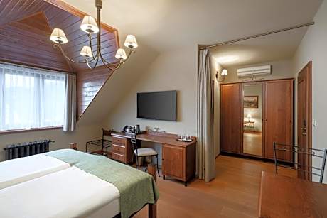 Offering free toiletries and bathrobes, this triple room includes a private bathroom with a bath, a shower and a hairdryer. The spacious air-conditioned triple room offers a flat-screen TV with cable channels, a mini-bar, a tea and coffee maker, a seating area as well as garden views. The unit has 2 beds.