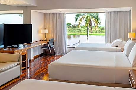 The 5-star Yacht & Golf Club Paraguayo, a Tribute Portfolio Resort offers lavish accommodations on 656 feet of private beach. Leisure options include an 18 hole golf course and outdoor pool. The spacious rooms at the Paraguayo Resort all offer free Wi-Fi, king-size beds and scenic landscape views. The hotel´s suites have a luxurious dining area and private hydromassage tub. Guests at the Yacht & Golf Club Paraguayo, a Tribute Portfolio Resort, can select from a range of options serving international and Paraguayan cuisine. A daily breakfast buffet with fresh fruits, pastries, and rolls is available. Located just 11 mi from the Silvio Pettirossi International Airport, car rental and free parking are available. A shuttle to and from the airport can be arranged for an extra fee.