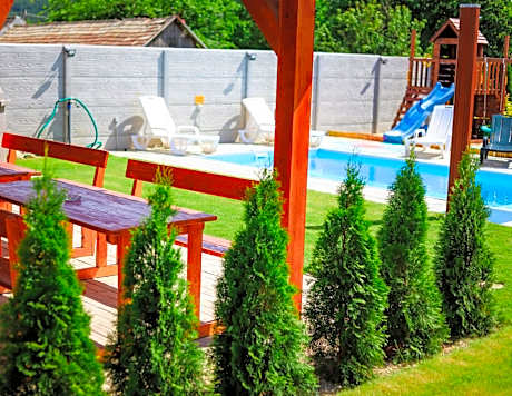 25 miles from Agrokomplex Nitra in Podhájska, Rezidencia Podhájska offers accommodations with access to spa facilities, wellness packages, and steam room. This property offers access to table tennis. There's an outdoor fireplace and guests can make use of free Wifi, free private parking, and an electric vehicle charging station. Offering a terrace or balcony with views of the mountain and pool, the units feature air conditioning, a seating area, satellite flat-screen TV, and kitchen. A microwave, a fridge, and stovetop are also offered, as well as a kettle. At the condo hotel, units have a private bathroom with a hair dryer and free toiletries. For guests with children, the condo hotel features indoor and outdoor play areas. Guests can swim in the pool with a view, go cycling or hiking, relax in the garden, and use the barbecue facilities. Mojmírovce Manor House is 24 miles from Rezidencia Podhájska. Piesťany Airport is 76 miles from the property.