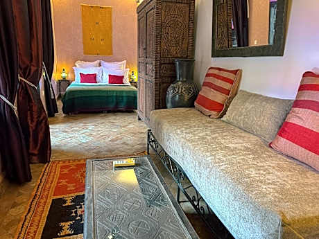 Riad Lapis-lazuli offers an indoor pool and air-conditioned accommodations with free Wifi in the center of Marrakesh, a 15-minute walk from The Orientalist Museum of Marrakech. With inner courtyard views, this accommodation provides a patio. The bed and breakfast features pool views, a sun terrace, and a 24-hour front desk. At the bed and breakfast, each unit is fitted with a wardrobe. There's a private bathroom with shower and a hair dryer in each unit, along with free toiletries. At the bed and breakfast, the units have bed linen and towels. Available, the breakfast at the property includes continental dishes along with a selection of pancakes and juice. There is an on-site traditional restaurant and coffee shop. Sightseeing tours are available in the surroundings. A car rental service is available at the bed and breakfast. Popular points of interest near Riad Lapis-lazuli include Boucharouite Museum, Le Jardin Secret, and Mouassine Museum. Marrakech-Menara Airport is 3.7 miles from the property, and the property offers a paid airport shuttle service. License Number(s): 40000MH1484
