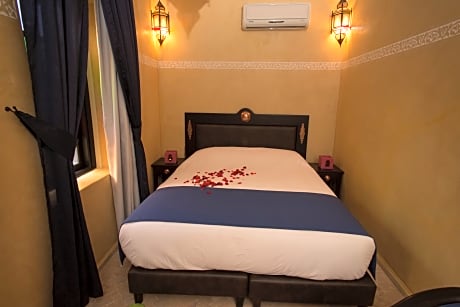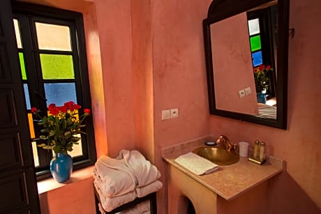 The riad has 2 buildings (1 with 7 bedrooms and the other with 5 bedrooms) and the distance between the two buildings is less than 10 meters. A Riad with a thousand and one night atmosphere, with modern comfort, rooms with the best mattresses on the market, very comfortably furnished, air conditioning, flat screen satellite television. the private bathroom is equipped with free toiletries. and a Terrace in the evening took your breath away. RIAD LA ROSE DU DESERT serves breakfast every morning and you can also enjoy Moroccan dishes in the dining room or on the terrace as well as an excursion office and other different activities organized in Marrakech and outside the city