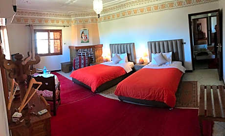 Riad Villa Midelt is a guesthouse located in the oases and grounds of Midelt, 100 miles from the Haut Atlas Oriental National Park. Free Wi-Fi is available throughout the hotel. Each Villa Midelt guest room is air-conditioned and equipped with a private bathroom. Some rooms also have a fireplace. Guests can enjoy traditional Moroccan cuisine at the riad's restaurant. Riad Villa Midelt is 112 miles from the city of Fes and free private parking is available.