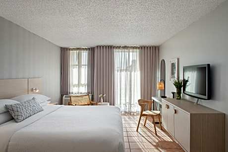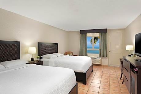 The resort's bright and attractive rooms feature tiled floors and air conditioning, ensuring a comfortable stay. Each room is equipped with a flat-screen TV and fridge, and many include cozy seating areas. Start the day with a delicious breakfast at Brasas Restaurant and enjoy dinner with a scenic view. By the pool, the Pelican Beachfront Grill provides a perfect spot for casual dining and cocktails.