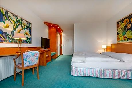 It is idyllically set between the university towns of Marburg and Giessen, and offers breathtaking views of the Lahntal valley. The rooms and suites at Landhotel Bellevue are simply furnished in a homelike fashion. Every accommodations has its own telephone. Guests can enjoy the surrounding woodlands by cycling or hiking. The hotel’s sunbathing area and table tennis facilities are also available for guest use. Landhotel Bellevue offers excellent connections to Frankfurt and Kassel .