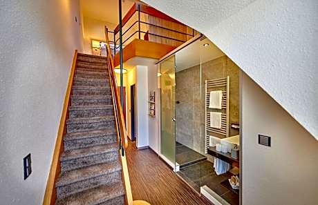 This room includes a private bathroom with a shower, a desk, a flat-screen TV, USB connection, and coffee and tea facilities and mini-bar. The rooms also have air conditioning, a hairdryer and a vanity mirror. Some maisonette rooms are equipped with a sofa bed.