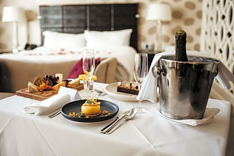 - Fitness center and in-room massage services