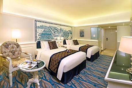 Experience an abundance of unparalleled facilities and features at Riviera Hotel.Maintain seamless communication using the complimentary Wi-Fi at hotel.Discovering Macau becomes even more accessible, thanks to the taxi amenities provided at the hotel. Guests can avail parking facilities at the hotel. During your stay at this fantastic hotel, the attentive front desk personnel can provide you with a range of amenities such as concierge service, express check-in or check-out, luggage storage and safety deposit boxes.In search of city's top entertainment, seek assistance at the hotel's ticket service and tours for reservations. At the hotel, utilize the on-site dry cleaning service and laundry service to maintain your beloved travel attire fresh, allowing you to bring fewer clothes.Craving relaxation? Make the most of your stay at the Riviera Hotel with convenient amenities like room service and daily housekeeping at your disposal. Kindly note that smoking is prohibited in the hotel to ensure fresher air for all visitors.For visitors wishing to smoke, designated smoking zones can be found.At Riviera Hotel, every guestroom is provided with convenient amenities and fittings to ensure a comfortable stay.Enhance your experience at hotel with the knowledge that certain rooms are equipped with linen service, blackout curtains and air conditioning for your convenience. At Riviera Hotel, each visit offers an array of intriguing room configurations, featuring accommodations with separate living room and balcony or terrace, ensuring a distinct experience every time.Certain rooms boast in-room amusement features such as television, in-room video streaming and cable TV, offering guests an enjoyable stay.In select rooms within the hotel, a refrigerator, bottled water, a coffee or tea maker, instant coffee, instant tea and mini bar is available to cater to your requirements when desired.It is worth noting that certain guest bathrooms feature a hair dryer, toiletries and bathrobes for your convenience. Begin your day with a scrumptious on-site breakfast available each morning at Riviera Hotel. At the hotel, an assortment of easily accessible and delicious meal choices are available to satisfy your appetite whenever it strikes.Create unforgettable moments with your fellow voyagers just steps away, at hotel's bar and nightclub, for a delightful evening together. At Riviera Hotel, guests can access vending machines that provide light snacks and beverages 24 hours a day. During your stay at hotel, an array of engaging activities and amenities guarantees a delightful experience. Discover the fitness amenities at hotel to maintain your health and strength during your getaway.