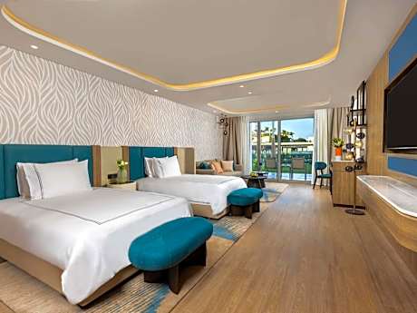 Located in Sharm El Sheikh, 1.2 miles from Adrenaline Beach, Rixos Radamis Sharm El Sheikh has accommodations with an outdoor swimming pool, free private parking, a fitness center and a garden. Offering a restaurant, the property also has a private beach area, as well as a sauna and a hot tub. A terrace, an in-house bar and shared lounge are available. Rooms have air conditioning and a TV, and certain accommodations at the resort have a safety deposit box. The rooms will provide guests with a closet and an electric tea pot. Breakfast is available, and includes buffet, continental and Full English/Irish options. Rixos Radamis Sharm El Sheikh offers a hammam. You can play pool, table tennis, and darts at the 5-star resort. Speaking Arabic, English, Russian and Turkish, staff will be happy to provide guests with practical advice on the area at the 24-hour front desk. SOHO Square Sharm El Sheikh is 4.4 miles from the accommodation, while International Congress Center - Jolie Ville Hotels is 11 miles from the property. Sharm el-Sheikh International Airport is 1.2 miles away.