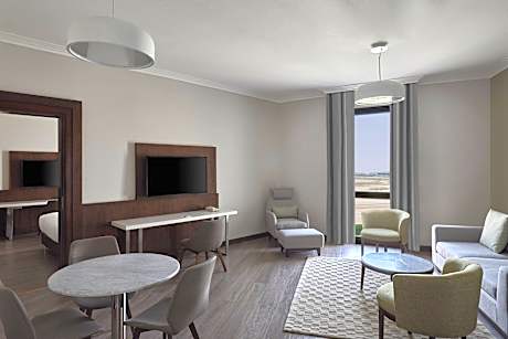 Riyadh Airport Marriott Hotel offers top-notch services and amenities, ensuring guests experience utmost comfort.Experience the wonders of Riyadh with ease by utilizing the services provided at car hire.Visitors can take advantage of the accessible parking options directly at the hotel.The accommodating team at the reception will aid you with amenities such as safety deposit boxes. Traveling with minimal baggage is achievable at Riyadh Airport Marriott Hotel, as the hotel's laundromat and dry cleaning service ensures your garments stay fresh. Room amenities like 24-hour room service, room service and daily housekeeping contribute to making a perfect selection for your stay. Each accommodation at Riyadh Airport Marriott Hotel is thoughtfully created and adorned to provide visitors with a comfortable, home-like atmosphere. In select rooms, guests can enjoy a touch of amusement with the availability of cable TV for their entertainment.Rest assured, in a few chosen rooms, the presence of instant tea can be found. Riyadh Airport Marriott Hotel offers a hair dryer and bathrobes in the restrooms of specific accommodations. Embark on your holiday experience in the most ideal manner. Commence each morning of your visit with an on-site breakfast.Experience the delight of a fresh morning by savoring excellent coffee at the cafe situated within hotel.No matter your specific dietary needs, rest assured that Riyadh Airport Marriott Hotel provides an array of halal choices to ensure your dining experience is nothing short of delightful.Experience an unforgettable evening with your fellow travelers just a short distance away, at hotel's bar.
