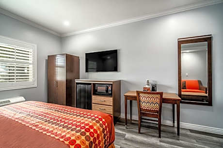 Located less than 15 minutes from the Rose Bowl and 20 minutes from Hollywood, this Pasadena hotel offers flat-screen TVs and free Wi-Fi. The rooms at the Pasadena Rodeway Inn and Suites feature a microwave and refrigerator. A coffee maker and work desk are also provided. The front desk at Rodeway Inn and Suites Pasadena is open 24 hours a day. Vending machines are located on-site and luggage storage is available. The Santa Anita Race Track is 10 minutes' drive from the Pasadena Rodeway Inn and Suites. The Los Angeles Zoo is less than 20 minutes from the hotel.