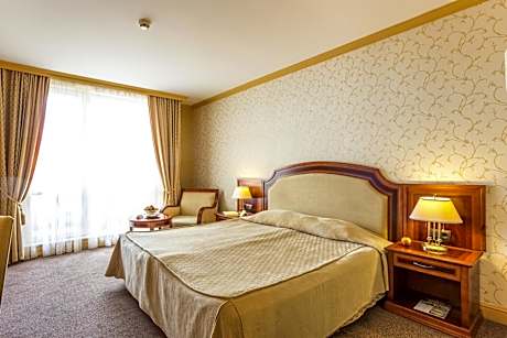 Hotel Romance and Family Suites is located in the center of the St. Constantine and Helena resort complex, 5 mi from the city of Varna and 492 feet from the seashore. Romance Family Suites has 59 double rooms and 36 family suites. The new body 2021 of Romance is aimed at the development of family and youth tourism and places an emphasis on amenities, freedom of residence and favorable prices. Outdoor pool with a length of 108 ft, and fitness. An impressive park with a rich collection of plant species, ponds with marsh plants and water lilies, areas for relaxation and recreation. The restaurant offers European and national cuisine, and the wine bar offers a rich collection of wines. The family concept allows for self-catering bookings (and facilities for storing products and preparing snacks in the room). Romance has a conference hall with 120 seats and is a preferred venue for seminars, cocktails and other events.