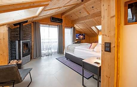 Room with a balcony overlooking the Matterhorn, a flat-screen cable TV, and a seating area. A private bathroom comes with a shower.