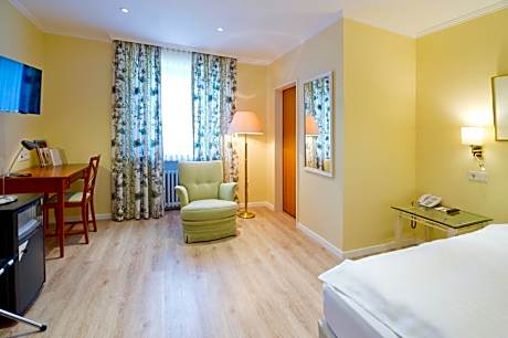This 4-star hotel with restaurant offers a daily breakfast buffet and free parking. It stands beside the forest in Milchborntal, a 5-minute walk from Bensberg Palace and a short drive or train journey from Cologne. Family-run since 1925, the Romantik Waldhotel Mangold has fully-equipped rooms with a safe, mini-bar and free WiFi. Some rooms offer scenic views of Bensburg Palace. The Waldstuben restaurant serves regional and seasonal specialties made from natural ingredients and has an open fireplace as well as a covered terrace, Waldstuben Café serves fresh waffles, pancakes and ice cream. The house has three event rooms, a bar, a club room and a dance floor. In summer, two covered terraces and a large park with deck chairs are also at guests' disposal. In addition to numerous jogging and hiking paths, there are also 5 golf courses in the immediate vicinity of the hotel. Romantik Waldhotel Mangold is a 15-minute walk from Bensberg Underground Station. The Wellness Oase Mediterana is 0.6 mi away. Cologne's exhibition grounds, the city center and Cologne/Bonn Airport can easily be reached in 15 minutes.