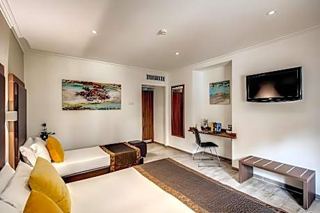 This larger air-conditioned room features satellite flat-screen TV, and a private bathroom with free toiletries.