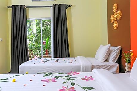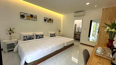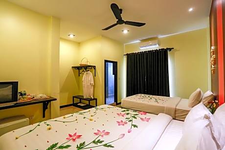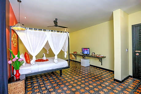 Located in Siem Reap, Home Indochine D'angkor Hotel offers an outdoor salt-water pool with sun lounges, a restaurant and a bar. Free WiFi and a front desk 24/7 are available. The air-conditioned rooms feature a TV, a safe box, a small fridge, a writing desk, a seating area. The private bathroom offers shower facility, a slipper, a hairdryer, bathrobes and free toiletries The restaurant serves breakfast, lunch and dinner. Tour arrangements, ticketing, laundry services, massage service, Apsara dinner show, cooking class, bike and car rental services, shuttle services and concierge services can be arranged for an extra charge. This nonsmoking property is 984 feet to Angkor Night Market, while Siem Reap International Airport is within 31 mi away. The well-known Tonle Sap Lake can be reached within a 7.5 mi drive from Home Indochine D'angkor Hotel.