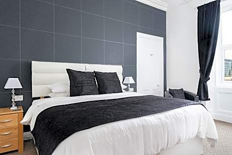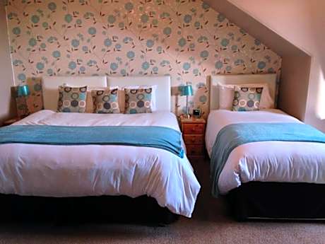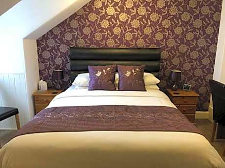 This room with attached bathroom features free Wi-Fi, a flat-screen TV with DVD player, and tea and coffee making facilities with hot chocolate and biscuits. Overlooking the back of the house, this room contains a King-size bed and a small en-suite shower room. It also features: Wall-Mounted LCD TV/DVD with FreeSat Channels Radio Alarm Clock Hairdryer Desk Mini Fridge Complementary Tray of Tea, Coffee, Hot Chocolate, and Biscuits Free Wi-Fi