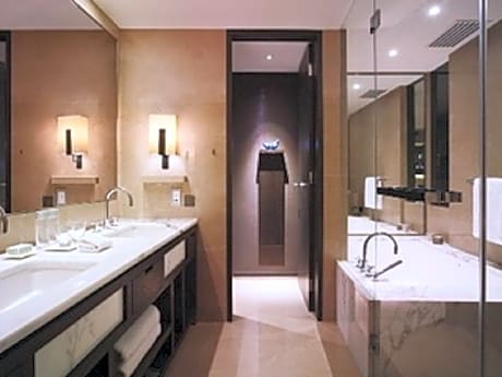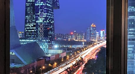 Featuring 55 square yards, Premier Rooms offer views of the iconic CCTV Tower and an option of a king bed. These spacious guestrooms are elegantly appointed with an elegant touch of art, books and accessories for residential elegant. Featuring a leather-covered chaise lounge, sofa, coffee table, lounge chair, workstation desk and large windows, guests can enjoy all the comforts of home. A separate bath and rainforest shower are also featured. Premier rooms are located on floors 7 through 23. Mini-bar comes with liquor selections.