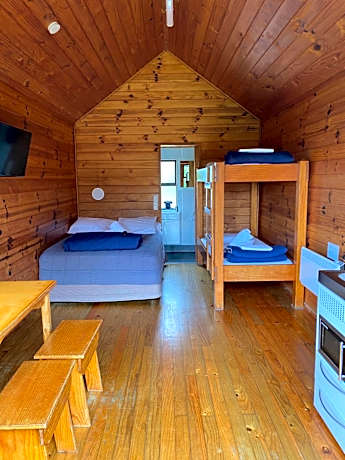 Guests have access to the following: - Communal kitchen - Communal showers and toilets, within close proximity to the cabin - Free hot pools and a swimming pool - BBQ area - Children's mountain bike track and playground - Tennis/netball courts - Cricket pitch and a rugby field - Communal TV lounge - Laundry facilities - Bike cleaning station