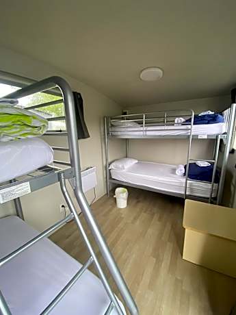 This authentic, open plan log cabin has a double-sized bed and 2 single bunk beds. A table and stools as well as a heater is provided.
